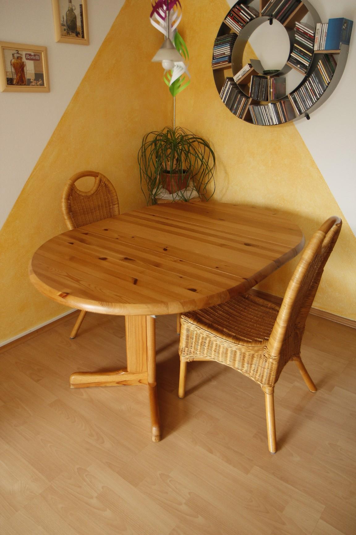 Steht der tisch frei im raum haben sie vier seiten, die sie mit stühlen bestücken können.